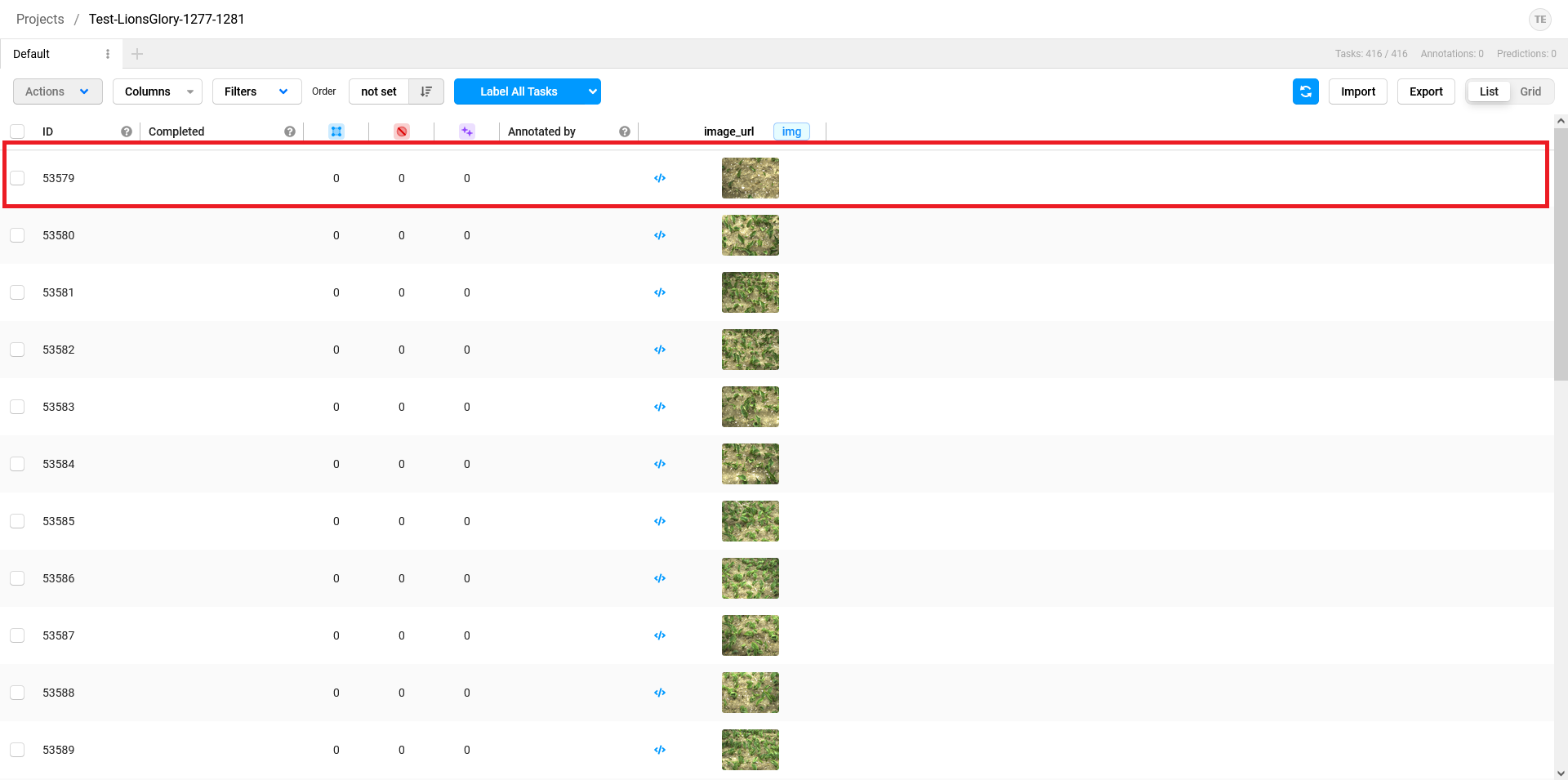 Below is series of screenshots that show a step for step explanaition on how to annotate sick tulips from you camera. images using Label Studio.