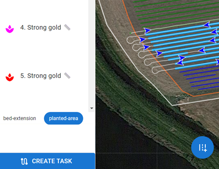 3. Select the tulip beds you want to start the task on. Use the orange line around the tulip beds as an indicator for the Selector 180 to start turning. If this line is placed too close or far to or from the tulip beds, first adjust the planted area before creating a task.