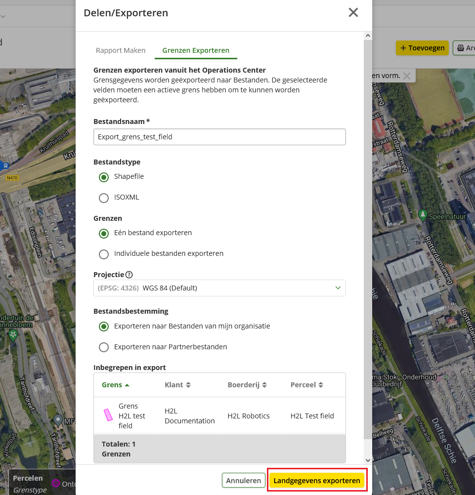- Selecteer het perceel waarvan u de grenzen wilt exporteren.