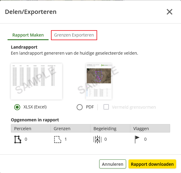 - Select the 'Grenzen Exporteren' tab in the menu that now appears.