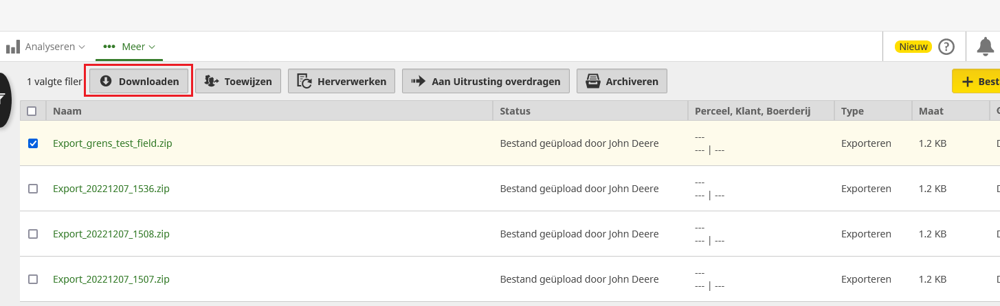 - You will now see a loading screen. Press 'Ga naar Bestanden' when the export is complete and download the boundary file in the same way